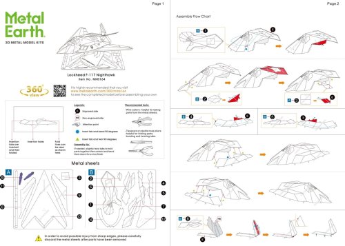 Jednotlivé diely vyberte z kovových plátkov, v prípade potreby použite malé štiepacie nožnice (nie sú súčasťou). Dieliky sa spájajú k sebe pomocou zámkov tvorených úchytom (zobáčikom) a otvorom. Zobáčik ohnite pomocou malých tenkých klieští (nie sú súčasťou) a postupne spojte všetky zámky až vznikne veľmi realistický majstrovský kúsok!