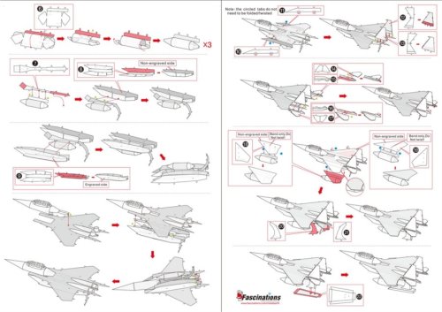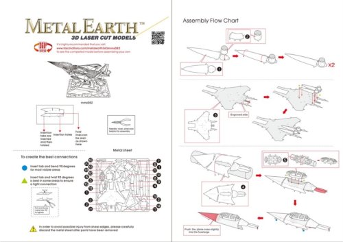 Jednotlivé diely vyberte z kovových plátkov, v prípade potreby použite malé štiepacie nožnice (nie sú súčasťou). Dieliky sa spájajú k sebe pomocou zámkov tvorených úchytom (zobáčikom) a otvorom. Zobáčik ohnite pomocou malých tenkých klieští (nie sú súčasťou) a postupne spojte všetky zámky až vznikne veľmi realistický majstrovský kúsok!