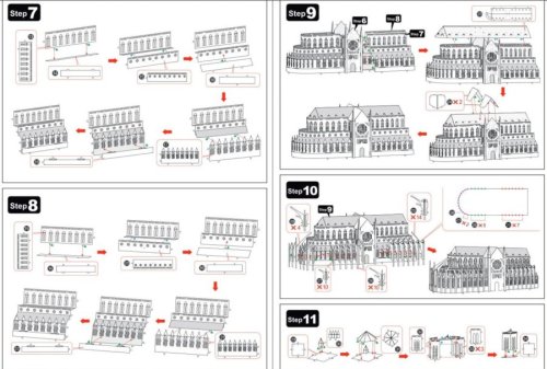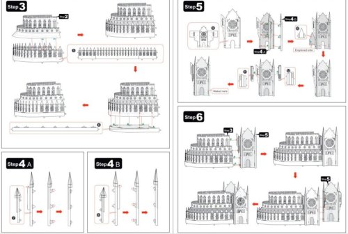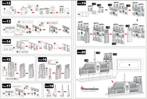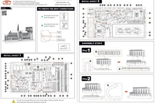 Jednotlivé diely vyberte z kovových plátkov, v prípade potreby použite malé štiepacie nožnice (nie sú súčasťou). Dieliky sa spájajú k sebe pomocou zámkov tvorených úchytom (zobáčikom) a otvorom. Zobáčik ohnite pomocou malých tenkých klieští (nie sú súčasťou) a postupne spojte všetky zámky až vznikne veľmi realistický majstrovský kúsok!