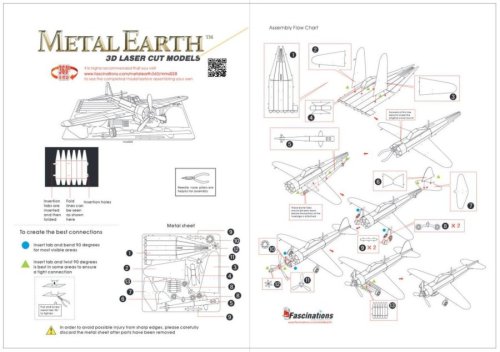 Jednotlivé diely vyberte z kovových plátkov, v prípade potreby použite malé štiepacie nožnice (nie sú súčasťou). Dieliky sa spájajú k sebe pomocou zámkov tvorených úchytom (zobáčikom) a otvorom. Zobáčik ohnite pomocou malých tenkých klieští (nie sú súčasťou) a postupne spojte všetky zámky až vznikne veľmi realistický majstrovský kúsok!