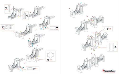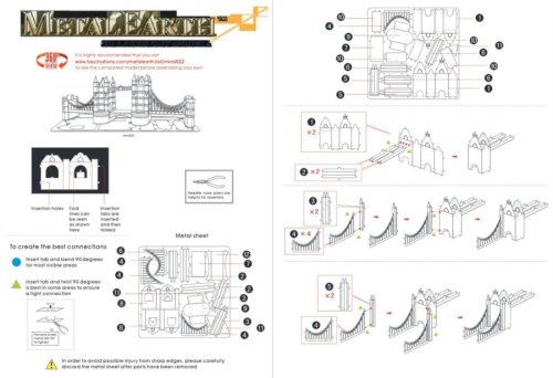 Jednotlivé diely vyberte z kovových plátkov, v prípade potreby použite malé štiepacie nožnice (nie sú súčasťou). Dieliky sa spájajú k sebe pomocou zámkov tvorených úchytom (zobáčikom) a otvorom. Zobáčik ohnite pomocou malých tenkých klieští (nie sú súčasťou) a postupne spojte všetky zámky až vznikne veľmi realistický majstrovský kúsok!