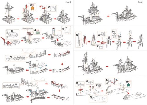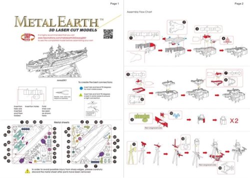 Jednotlivé diely vyberte z kovových plátkov, v prípade potreby použite malé štiepacie nožnice (nie sú súčasťou). Dieliky sa spájajú k sebe pomocou zámkov tvorených úchytom (zobáčikom) a otvorom. Zobáčik ohnite pomocou malých tenkých klieští (nie sú súčasťou) a postupne spojte všetky zámky až vznikne veľmi realistický majstrovský kúsok!