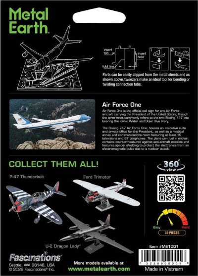 Súprava na vytvorenie fascinujúceho kovového 3D modelu . Stavba puzzle METAL EARTH vyžaduje trpezlivosť a šikovné ruky. Výsledok práce však plne vyváža vynaložené úsilie. Miniatúrne repliky sú pôsobivou a pútavou dekoráciou. Zo štvorcových plátkov ocele Vám pod rukami vyrastú detailne prepracované, fascinujúce modely. Autentický vzhľad 3D puzzle METAL EARTH je dosiahnutý vďaka detailnému laserovému gravírovaniu. Náradie nie je súčasťou balenia. PRACOVNÝ POSTUP: Jednotlivé diely vyberte z kovových plátkov, v prípade potreby použite malé štiepacie nožnice (nie sú súčasťou). Dieliky sa spájajú k sebe pomocou zámkov tvorených úchytom (zobáčikom) a otvorom. Zobáčik ohnite pomocou malých tenkých klieští (nie sú súčasťou) a postupne spojte všetky zámky až vznikne veľmi realistický majstrovský kúsok!