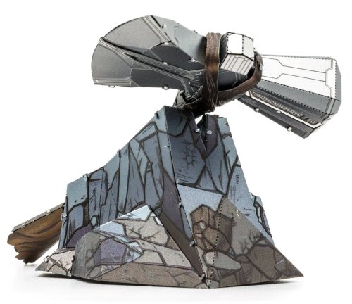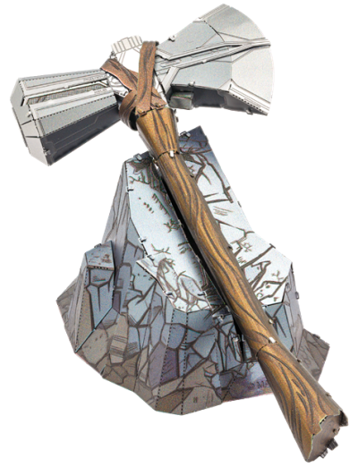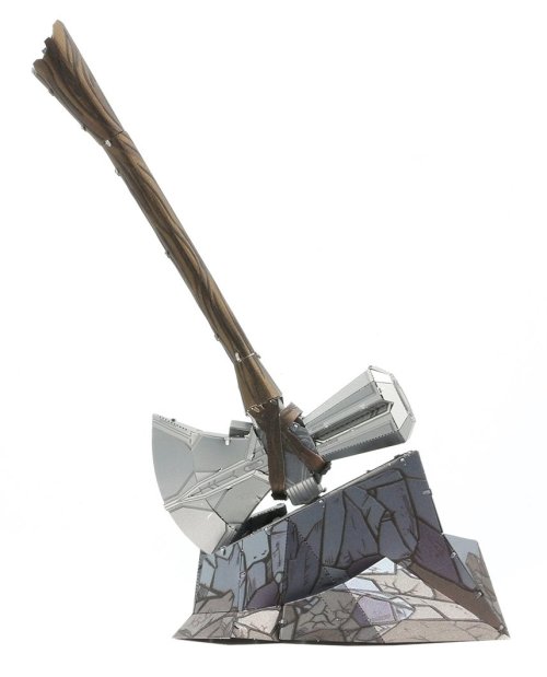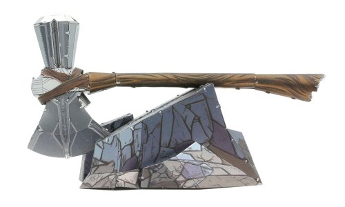 Vzrušujúca výzva, zážitok pri skladaní a oslnivý výsledok – to sú modely METAL EARTH! Model z kolekcie Avengers pre všetkých fanúšikov superhrdinov! Stavba 3D puzzle METAL EARTH vyžaduje trpezlivosť a šikovné ruky. Výsledok práce však plne vyváža vynaložené úsilie! Miniatúrne repliky sú obzvlášť pôsobivou a pútavou dekoráciou nielen doma, ale aj v kancelárii či v škole. Zo štvorcových plátkov ocele (11 x 11 cm) Vám pod rukami vyrastie detailne prepracovaný, fascinujúci model. Autentický vzhľad 3D puzzle METAL EARTH je dosiahnutý vďaka detailnému laserovému gravírovaniu. Balenie obsahuje 2 oceľové plátky s dielikmi a návod na zloženie. Náradie nie je súčasťou balenia. PRACOVNÝ POSTUP: Jednotlivé diely vyberte z kovových plátkov, v prípade potreby použite malé štiepacie nožnice (nie sú súčasťou). Dieliky sa spájajú k sebe pomocou zámkov tvorených úchytom (zobáčikom) a otvorom. Zobáčik ohnite pomocou malých tenkých klieští (nie sú súčasťou) a postupne spojte všetky zámky až vznikne veľmi realistický majstrovský kúsok! Odporúčaný vek: od 14 rokov. Rozmer zloženého puzzle cca 12,5 x 5,8 x 1,5 cm (sekera), 7,6 x 5 x 3,6 cm (podstavec)