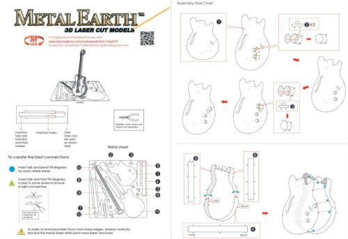 Jednotlivé diely vyberte z kovových plátkov, v prípade potreby použite malé štiepacie nožnice (nie sú súčasťou). Dieliky sa spájajú k sebe pomocou zámkov tvorených úchytom (zobáčikom) a otvorom. Zobáčik ohnite pomocou malých tenkých klieští (nie sú súčasťou) a postupne spojte všetky zámky až vznikne veľmi realistický majstrovský kúsok!