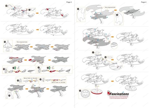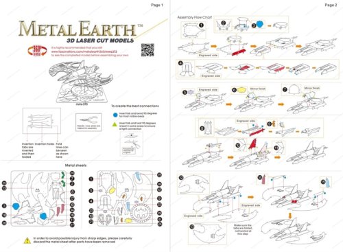 Jednotlivé diely vyberte z kovových plátkov, v prípade potreby použite malé štiepacie nožnice (nie sú súčasťou). Dieliky sa spájajú k sebe pomocou zámkov tvorených úchytom (zobáčikom) a otvorom. Zobáčik ohnite pomocou malých tenkých klieští (nie sú súčasťou) a postupne spojte všetky zámky až vznikne veľmi realistický majstrovský kúsok!