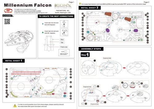 Jednotlivé diely vyberte z kovových plátkov, v prípade potreby použite malé štiepacie nožnice (nie sú súčasťou). Dieliky sa spájajú k sebe pomocou zámkov tvorených úchytom (zobáčikom) a otvorom. Zobáčik ohnite pomocou malých tenkých klieští (nie sú súčasťou) a postupne spojte všetky zámky až vznikne veľmi realistický majstrovský kúsok!