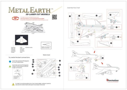 Jednotlivé diely vyberte z kovových plátkov, v prípade potreby použite malé štiepacie nožnice (nie sú súčasťou). Dieliky sa spájajú k sebe pomocou zámkov tvorených úchytom (zobáčikom) a otvorom. Zobáčik ohnite pomocou malých tenkých klieští (nie sú súčasťou) a postupne spojte všetky zámky až vznikne veľmi realistický majstrovský kúsok!