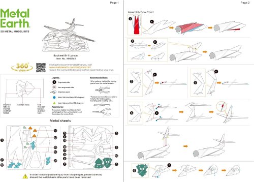 Jednotlivé diely vyberte z kovových plátkov, v prípade potreby použite malé štiepacie nožnice (nie sú súčasťou). Dieliky sa spájajú k sebe pomocou zámkov tvorených úchytom (zobáčikom) a otvorom. Zobáčik ohnite pomocou malých tenkých klieští (nie sú súčasťou) a postupne spojte všetky zámky až vznikne veľmi realistický majstrovský kúsok!