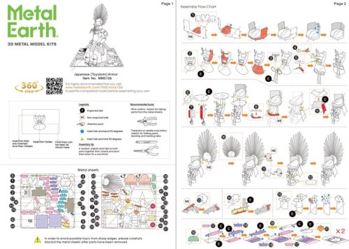 Jednotlivé diely vyberte z kovových plátkov, v prípade potreby použite malé štiepacie nožnice (nie sú súčasťou). Dieliky sa spájajú k sebe pomocou zámkov tvorených úchytom (zobáčikom) a otvorom. Zobáčik ohnite pomocou malých tenkých klieští (nie sú súčasťou) a postupne spojte všetky zámky až vznikne veľmi realistický majstrovský kúsok!