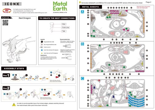 Jednotlivé diely vyberte z kovových plátkov, v prípade potreby použite malé štiepacie nožnice (nie sú súčasťou). Dieliky sa spájajú k sebe pomocou zámkov tvorených úchytom (zobáčikom) a otvorom. Zobáčik ohnite pomocou malých tenkých klieští (nie sú súčasťou) a postupne spojte všetky zámky až vznikne veľmi realistický majstrovský kúsok!