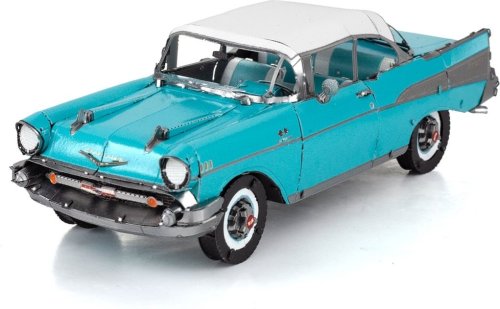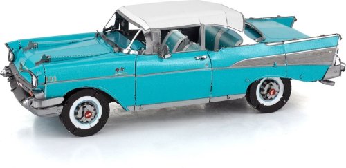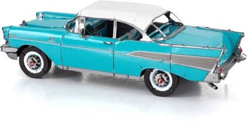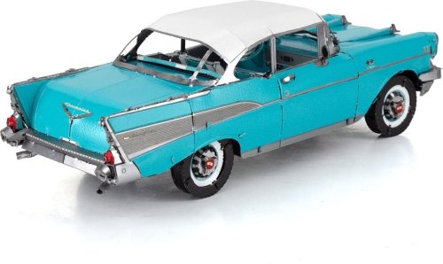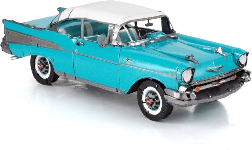 Snáď žiadne vozidlo nereprezentuje americkú kultúru viac ako klasický Chevrolet z roku 1957. Tento ikonický automobil je súčasťou mnohých amerických príbehov a bol zvečnený v piesňach, filmoch aj televízii. Chevrolet navrhol model Bel Air z roku 1957 ako luxusnú verziu, ktorá ponúkala voliteľný osemvalcový motor s vstrekovaním paliva Ramjet, výrazné zvislé zadné plutvy a chrómovaný predný nárazník so štýlovými torpédovými akcentmi pod svetlometmi. Odvážny nový dizajn a jedinečné prvky, ako napríklad rádio s automatickým ladením, ktoré bolo obvykle vyhradené pre drahé luxusné vozidlá, urobili tento model mimoriadne populárnym. Súprava na vytvorenie fascinujúceho kovového 3D modelu . Stavba puzzle METAL EARTH vyžaduje trpezlivosť a šikovné ruky. Výsledok práce však plne vyváža vynaložené úsilie. Miniatúrne repliky sú pôsobivou a pútavou dekoráciou. Zo štvorcových plátkov ocele Vám pod rukami vyrastú detailne prepracované, fascinujúce modely. Autentický vzhľad 3D puzzle METAL EARTH je dosiahnutý vďaka detailnému laserovému gravírovaniu. Náradie nie je súčasťou balenia. PRACOVNÝ POSTUP: Jednotlivé diely vyberte z kovových plátkov, v prípade potreby použite malé štiepacie nožnice (nie sú súčasťou). Dieliky sa spájajú k sebe pomocou zámkov tvorených úchytom (zobáčikom) a otvorom. Zobáčik ohnite pomocou malých tenkých klieští (nie sú súčasťou) a postupne spojte všetky zámky až vznikne veľmi realistický majstrovský kúsok! Rozmer zloženého puzzle cca 11,1 x 4,1 x 3,7 cm