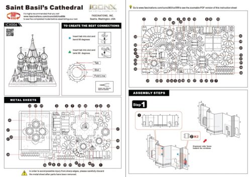 Jednotlivé diely vyberte z kovových plátkov, v prípade potreby použite malé štiepacie nožnice (nie sú súčasťou). Dieliky sa spájajú k sebe pomocou zámkov tvorených úchytom (zobáčikom) a otvorom. Zobáčik ohnite pomocou malých tenkých klieští (nie sú súčasťou) a postupne spojte všetky zámky až vznikne veľmi realistický majstrovský kúsok!