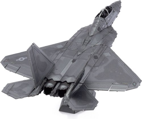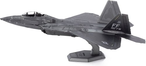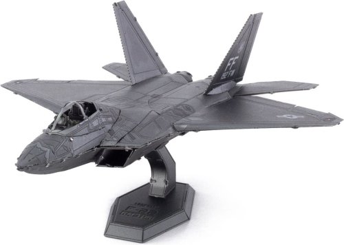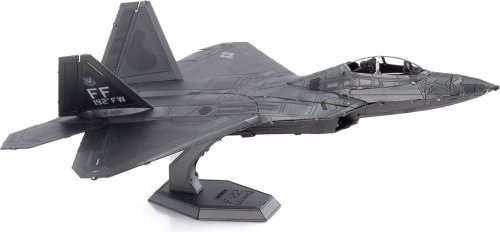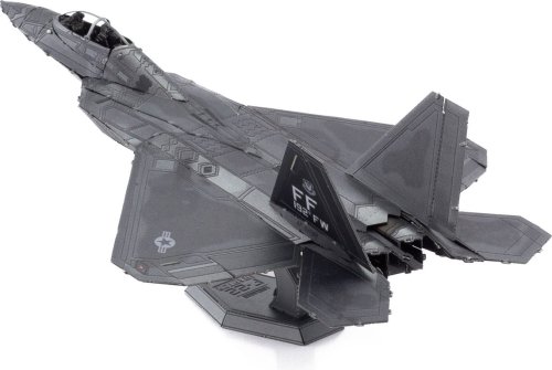 Lockheed Martin F-22® Raptor® je jednomiestne dvojmotorové stíhacie lietadlo piatej generácie s extrémnou manévrovateľnosťou. Spája stealth technológiu, rýchlosť, agilitu, presnosť a situačné povedomie s výnimočnými schopnosťami v boji vzduch-vzduch aj vzduch-zem, čo z neho robí najlepšie stíhacie lietadlo súčasnosti. Súprava na vytvorenie fascinujúceho kovového 3D modelu . Stavba puzzle METAL EARTH vyžaduje trpezlivosť a šikovné ruky. Výsledok práce však plne vyváža vynaložené úsilie. Miniatúrne repliky sú pôsobivou a pútavou dekoráciou. Zo štvorcových plátkov ocele Vám pod rukami vyrastú detailne prepracované, fascinujúce modely. Autentický vzhľad 3D puzzle METAL EARTH je dosiahnutý vďaka detailnému laserovému gravírovaniu. Náradie nie je súčasťou balenia. PRACOVNÝ POSTUP: Jednotlivé diely vyberte z kovových plátkov, v prípade potreby použite malé štiepacie nožnice (nie sú súčasťou). Dieliky sa spájajú k sebe pomocou zámkov tvorených úchytom (zobáčikom) a otvorom. Zobáčik ohnite pomocou malých tenkých klieští (nie sú súčasťou) a postupne spojte všetky zámky až vznikne veľmi realistický majstrovský kúsok! Rozmer zloženého puzzle cca 14 x 10,1 x 5,5 cm