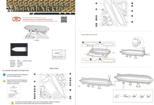 Jednotlivé diely vyberte z kovových plátkov, v prípade potreby použite malé štiepacie nožnice (nie sú súčasťou). Dieliky sa spájajú k sebe pomocou zámkov tvorených úchytom (zobáčikom) a otvorom. Zobáčik ohnite pomocou malých tenkých klieští (nie sú súčasťou) a postupne spojte všetky zámky až vznikne veľmi realistický majstrovský kúsok!