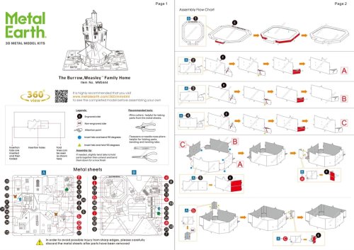 Jednotlivé diely vyberte z kovových plátkov, v prípade potreby použite malé štiepacie nožnice (nie sú súčasťou). Dieliky sa spájajú k sebe pomocou zámkov tvorených úchytom (zobáčikom) a otvorom. Zobáčik ohnite pomocou malých tenkých klieští (nie sú súčasťou) a postupne spojte všetky zámky až vznikne veľmi realistický majstrovský kúsok!