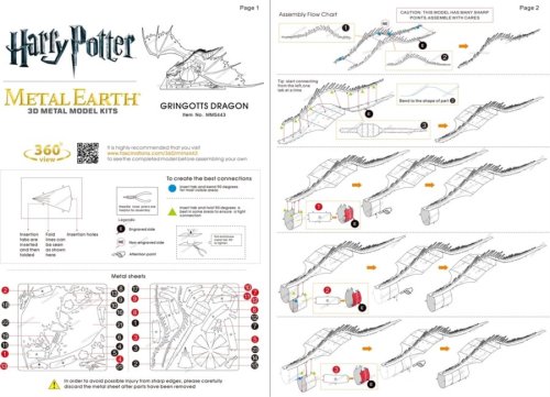 Jednotlivé diely vyberte z kovových plátkov, v prípade potreby použite malé štiepacie nožnice (nie sú súčasťou). Dieliky sa spájajú k sebe pomocou zámkov tvorených úchytom (zobáčikom) a otvorom. Zobáčik ohnite pomocou malých tenkých klieští (nie sú súčasťou) a postupne spojte všetky zámky až vznikne veľmi realistický majstrovský kúsok!