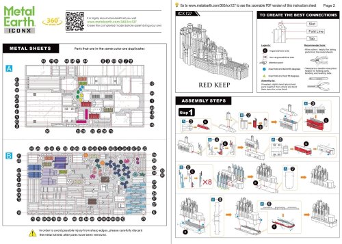 Vzrušujúca výzva, zážitok pri skladaní a oslnivý výsledok – to sú modely METAL EARTH! Model z prémiového radu ICONX Game of Thrones Vás očarí ešte dokonalejším spracovaním detailov! Stavba 3D puzzle METAL EARTH ICONX vyžaduje trpezlivosť a šikovné ruky. Výsledok práce však plne vyváža vynaložené úsilie! Miniatúrne repliky sú obzvlášť pôsobivou a pútavou dekoráciou nielen doma, ale aj v kancelárii či v škole. Z obdĺžnikových plátkov ocele (21 x 11 cm) s časťami svetových monumentov, slávnych dopravných prostriedkov, hudobných nástrojov či zvierat Vám pod rukami vyrastú detailne prepracované, fascinujúce modely. Autentický vzhľad 3D puzzle METAL EARTH ICONX je dosiahnutý vďaka detailnému laserovému gravírovaniu. Balenie obsahuje 2 oceľové plátky a návod na zloženie. Náradie nie je súčasťou balenia. PRACOVNÝ POSTUP: Jednotlivé diely vyberte z kovových plátkov, v prípade potreby použite malé štiepacie nožnice (nie sú súčasťou). Dieliky sa spájajú k sebe pomocou zámkov tvorených úchytom (zobáčikom) a otvorom. Zobáčik ohnite pomocou malých tenkých klieští (nie sú súčasťou) a postupne spojte všetky zámky až vznikne veľmi realistický majstrovský kúsok! Odporúčaný vek: od 14 rokov. Rozmer zloženého puzzle cca 9,9 x 6,8 x 3,5 cm