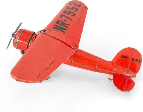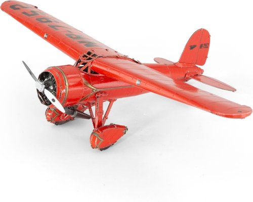 Tento jednomotorový hornoplošník Lockheed Vega 5B bol zakúpený v roku 1932 slávnou pilotkou Ameliou Earhart, ktorá ho nazývala svojím „Malým červeným autobusom“. Lietadlo poháňalo motor s výkonom 450 koní a dosahovalo cestovnú rýchlosť 155 mph (250 km,h). V roku 1932 sa Amelia Earhart pri lete s týmto lietadlom stala prvou ženou, ktorá preletela Atlantický oceán bez medzipristátia, a zároveň prvou ženou, ktorá uskutočnila sólový nonstop rokov naprieč Spojenými štátmi. Súprava na vytvorenie fascinujúceho kovového 3D modelu . Stavba puzzle METAL EARTH vyžaduje trpezlivosť a šikovné ruky. Výsledok práce však plne vyváža vynaložené úsilie. Miniatúrne repliky sú pôsobivou a pútavou dekoráciou. Zo štvorcových plátkov ocele Vám pod rukami vyrastú detailne prepracované, fascinujúce modely. Autentický vzhľad 3D puzzle METAL EARTH je dosiahnutý vďaka detailnému laserovému gravírovaniu. Náradie nie je súčasťou balenia. PRACOVNÝ POSTUP: Jednotlivé diely vyberte z kovových plátkov, v prípade potreby použite malé štiepacie nožnice (nie sú súčasťou). Dieliky sa spájajú k sebe pomocou zámkov tvorených úchytom (zobáčikom) a otvorom. Zobáčik ohnite pomocou malých tenkých klieští (nie sú súčasťou) a postupne spojte všetky zámky až vznikne veľmi realistický majstrovský kúsok! Rozmer zloženého puzzle cca 16,5 x 10,2 x 3,8 cm