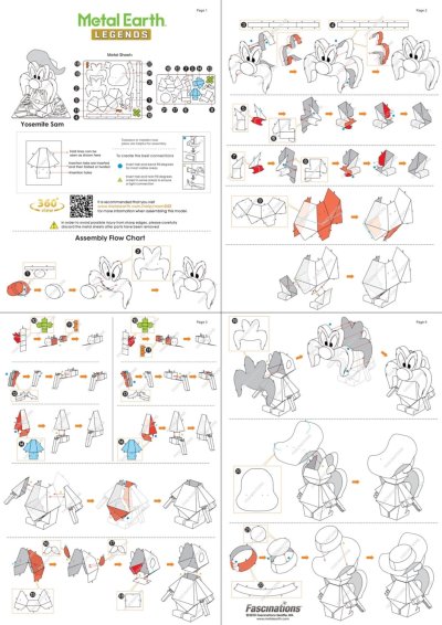 Jednotlivé diely vyberte z kovových plátkov, v prípade potreby použite malé štiepacie nožnice (nie sú súčasťou). Dieliky sa spájajú k sebe pomocou zámkov tvorených úchytom (zobáčikom) a otvorom. Zobáčik ohnite pomocou malých tenkých klieští (nie sú súčasťou) a postupne spojte všetky zámky až vznikne veľmi realistický majstrovský kúsok!