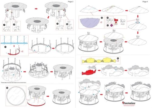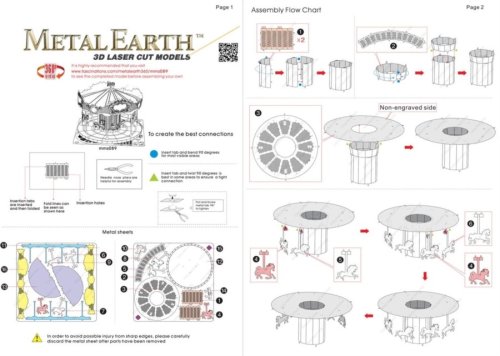 Jednotlivé diely vyberte z kovových plátkov, v prípade potreby použite malé štiepacie nožnice (nie sú súčasťou). Dieliky sa spájajú k sebe pomocou zámkov tvorených úchytom (zobáčikom) a otvorom. Zobáčik ohnite pomocou malých tenkých klieští (nie sú súčasťou) a postupne spojte všetky zámky až vznikne veľmi realistický majstrovský kúsok!