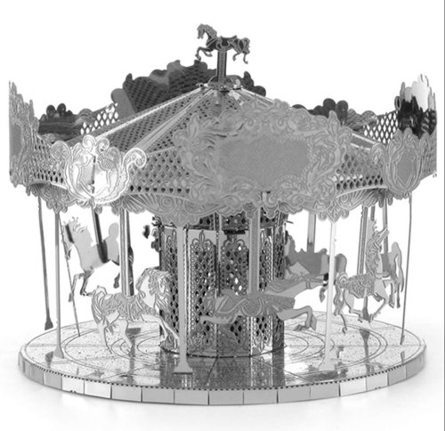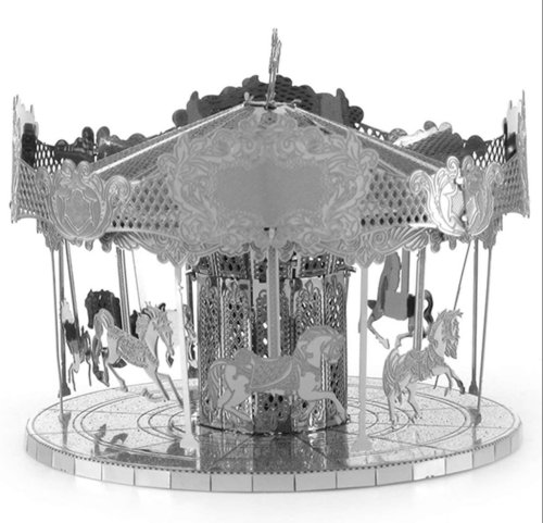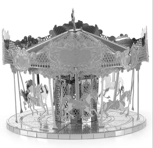 Otáčavá kruhová plošina môže byť umiestnená v pevnom stavení alebo stane, alebo sa otáča aj strecha kolotoča. Na plošine sú upevnené sedadlá, lavičky, alebo častejšie koníčky, autíčka alebo vagóniky. Plošinové kolotoče sú určené predovšetkým pre malé deti, rodičia ich môžu na plošine sprevádzať aj držať. V Prahe stojí historický letenský kolotoč s koníčkami z roku 1892, ktorý je už mnoho rokov zatvorený a čaká na rekonštrukciu. Veľa podobných pouličných kolotočov je v prevádzke v Paríži. Viac na Wikipédii Rozmer zloženého puzzle cca 6,35 x 6,35 x 5,1 cm