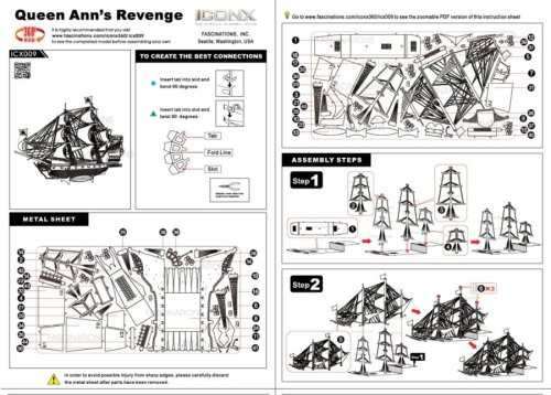 Jednotlivé diely vyberte z kovových plátkov, v prípade potreby použite malé štiepacie nožnice (nie sú súčasťou). Dieliky sa spájajú k sebe pomocou zámkov tvorených úchytom (zobáčikom) a otvorom. Zobáčik ohnite pomocou malých tenkých klieští (nie sú súčasťou) a postupne spojte všetky zámky až vznikne veľmi realistický majstrovský kúsok!