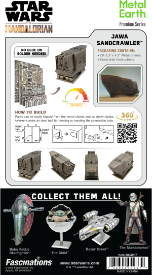 Súprava na vytvorenie fascinujúceho kovového 3D modelu . Stavba puzzle METAL EARTH vyžaduje trpezlivosť a šikovné ruky. Výsledok práce však plne vyváža vynaložené úsilie. Miniatúrne repliky sú pôsobivou a pútavou dekoráciou. Zo štvorcových plátkov ocele Vám pod rukami vyrastú detailne prepracované, fascinujúce modely. Autentický vzhľad 3D puzzle METAL EARTH je dosiahnutý vďaka detailnému laserovému gravírovaniu. Náradie nie je súčasťou balenia. PRACOVNÝ POSTUP: Jednotlivé diely vyberte z kovových plátkov, v prípade potreby použite malé štiepacie nožnice (nie sú súčasťou). Dieliky sa spájajú k sebe pomocou zámkov tvorených úchytom (zobáčikom) a otvorom. Zobáčik ohnite pomocou malých tenkých klieští (nie sú súčasťou) a postupne spojte všetky zámky až vznikne veľmi realistický majstrovský kúsok!