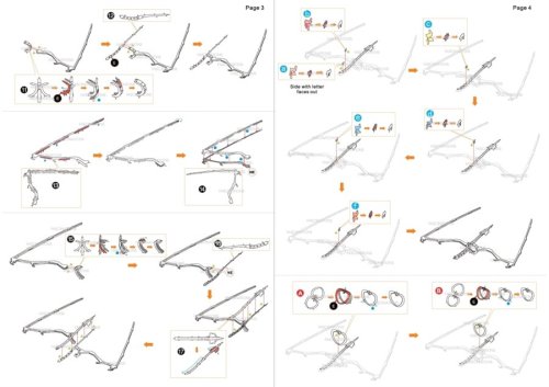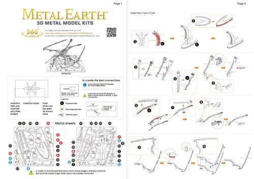 Jednotlivé diely vyberte z kovových plátkov, v prípade potreby použite malé štiepacie nožnice (nie sú súčasťou). Dieliky sa spájajú k sebe pomocou zámkov tvorených úchytom (zobáčikom) a otvorom. Zobáčik ohnite pomocou malých tenkých klieští (nie sú súčasťou) a postupne spojte všetky zámky až vznikne veľmi realistický majstrovský kúsok!