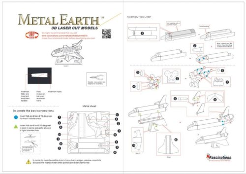 Jednotlivé diely vyberte z kovových plátkov, v prípade potreby použite malé štiepacie nožnice (nie sú súčasťou). Dieliky sa spájajú k sebe pomocou zámkov tvorených úchytom (zobáčikom) a otvorom. Zobáčik ohnite pomocou malých tenkých klieští (nie sú súčasťou) a postupne spojte všetky zámky až vznikne veľmi realistický majstrovský kúsok!
