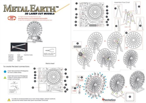 Jednotlivé diely vyberte z kovových plátkov, v prípade potreby použite malé štiepacie nožnice (nie sú súčasťou). Dieliky sa spájajú k sebe pomocou zámkov tvorených úchytom (zobáčikom) a otvorom. Zobáčik ohnite pomocou malých tenkých klieští (nie sú súčasťou) a postupne spojte všetky zámky až vznikne veľmi realistický majstrovský kúsok!