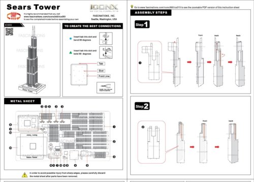 Jednotlivé diely vyberte z kovových plátkov, v prípade potreby použite malé štiepacie nožnice (nie sú súčasťou). Dieliky sa spájajú k sebe pomocou zámkov tvorených úchytom (zobáčikom) a otvorom. Zobáčik ohnite pomocou malých tenkých klieští (nie sú súčasťou) a postupne spojte všetky zámky až vznikne veľmi realistický majstrovský kúsok!
