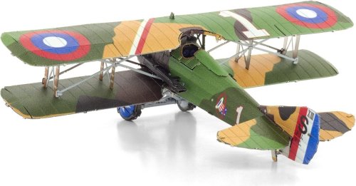 SPAD S.XIII bolo francúzske jednomiestne dvojplošné stíhacie lietadlo z prvej svetovej vojny, ktoré sa ukázalo ako jeden z najvýkonnejších stíhačov vojny. Zároveň patril k najviac vyrábaným lietadlám svojej doby, s celkovým počtom 8 472 kusov. Na SPADe S.XIII lietalo mnoho slávnych pilotov prvej svetovej vojny, vrátane najúspešnejšieho amerického esá, kapitána Eddieho Rickenbackera. Súprava na vytvorenie fascinujúceho kovového 3D modelu . Stavba puzzle METAL EARTH vyžaduje trpezlivosť a šikovné ruky. Výsledok práce však plne vyváža vynaložené úsilie. Miniatúrne repliky sú pôsobivou a pútavou dekoráciou. Zo štvorcových plátkov ocele Vám pod rukami vyrastú detailne prepracované, fascinujúce modely. Autentický vzhľad 3D puzzle METAL EARTH je dosiahnutý vďaka detailnému laserovému gravírovaniu. Náradie nie je súčasťou balenia. PRACOVNÝ POSTUP: Jednotlivé diely vyberte z kovových plátkov, v prípade potreby použite malé štiepacie nožnice (nie sú súčasťou). Dieliky sa spájajú k sebe pomocou zámkov tvorených úchytom (zobáčikom) a otvorom. Zobáčik ohnite pomocou malých tenkých klieští (nie sú súčasťou) a postupne spojte všetky zámky až vznikne veľmi realistický majstrovský kúsok! Rozmer zloženého puzzle cca 10,8 x 8,4 x 3,2 cm