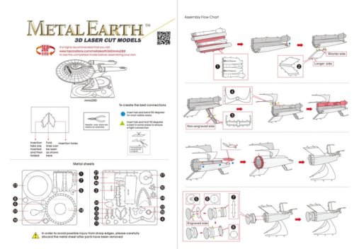 Jednotlivé diely vyberte z kovových plátkov, v prípade potreby použite malé štiepacie nožnice (nie sú súčasťou). Dieliky sa spájajú k sebe pomocou zámkov tvorených úchytom (zobáčikom) a otvorom. Zobáčik ohnite pomocou malých tenkých klieští (nie sú súčasťou) a postupne spojte všetky zámky až vznikne veľmi realistický majstrovský kúsok!