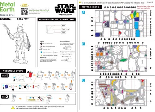 Vzrušujúca výzva, zážitok pri skladaní a oslnivý výsledok – to sú modely METAL EARTH! Model z prémiového radu Star Wars ICONX v exkluzívnom darčekovom balení Vás očarí ešte dokonalejším spracovaním detailov! Stavba 3D puzzle METAL EARTH ICONX vyžaduje trpezlivosť a šikovné ruky. Výsledok práce však plne vyváža vynaložené úsilie! Miniatúrne repliky sú obzvlášť pôsobivou a pútavou dekoráciou nielen doma, ale aj v kancelárii či v škole. Z obdĺžnikových plátkov ocele s časťami svetových monumentov, slávnych dopravných prostriedkov, hudobných nástrojov či zvierat Vám pod rukami vyrastú detailne prepracované, fascinujúce modely. Autentický vzhľad 3D puzzle METAL EARTH ICONX je dosiahnutý vďaka detailnému laserovému gravírovaniu. Balenie obsahuje 3 oceľové plátky predraženými dielikmi, pinzetu a návod na zloženie. Náradie - kliešte nie sú súčasťou balenia. PRACOVNÝ POSTUP: Jednotlivé diely vyberte z kovových plátkov, v prípade potreby použite malé štiepacie nožnice (nie sú súčasťou). Dieliky sa spájajú k sebe pomocou zámkov tvorených úchytom (zobáčikom) a otvorom. Zobáčik ohnite pomocou malých tenkých klieští (nie sú súčasťou) a postupne spojte všetky zámky až vznikne veľmi realistický majstrovský kúsok! Odporúčaný vek: od 14 rokov. Rozmer zloženého puzzle cca 10,41 x 8,13 x 18,29 cm