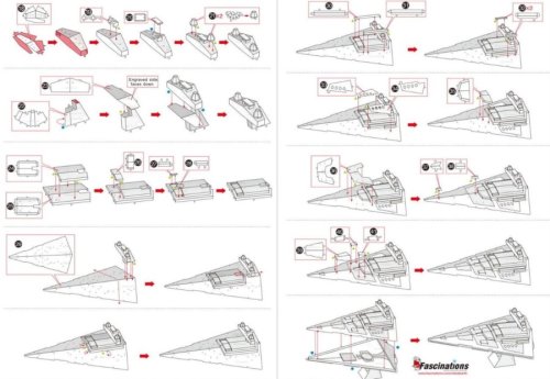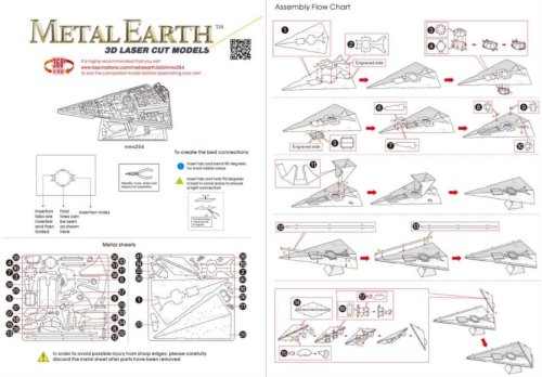 Jednotlivé diely vyberte z kovových plátkov, v prípade potreby použite malé štiepacie nožnice (nie sú súčasťou). Dieliky sa spájajú k sebe pomocou zámkov tvorených úchytom (zobáčikom) a otvorom. Zobáčik ohnite pomocou malých tenkých klieští (nie sú súčasťou) a postupne spojte všetky zámky až vznikne veľmi realistický majstrovský kúsok!