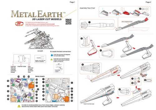 Jednotlivé diely vyberte z kovových plátkov, v prípade potreby použite malé štiepacie nožnice (nie sú súčasťou). Dieliky sa spájajú k sebe pomocou zámkov tvorených úchytom (zobáčikom) a otvorom. Zobáčik ohnite pomocou malých tenkých klieští (nie sú súčasťou) a postupne spojte všetky zámky až vznikne veľmi realistický majstrovský kúsok!