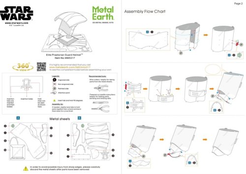 Jednotlivé diely vyberte z kovových plátkov, v prípade potreby použite malé štiepacie nožnice (nie sú súčasťou). Dieliky sa spájajú k sebe pomocou zámkov tvorených úchytom (zobáčikom) a otvorom. Zobáčik ohnite pomocou malých tenkých klieští (nie sú súčasťou) a postupne spojte všetky zámky až vznikne veľmi realistický majstrovský kúsok!