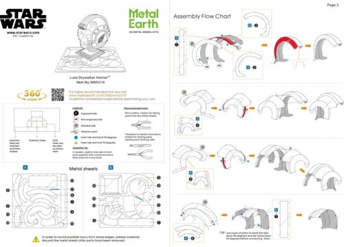 Jednotlivé diely vyberte z kovových plátkov, v prípade potreby použite malé štiepacie nožnice (nie sú súčasťou). Dieliky sa spájajú k sebe pomocou zámkov tvorených úchytom (zobáčikom) a otvorom. Zobáčik ohnite pomocou malých tenkých klieští (nie sú súčasťou) a postupne spojte všetky zámky až vznikne veľmi realistický majstrovský kúsok!