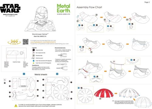 Jednotlivé diely vyberte z kovových plátkov, v prípade potreby použite malé štiepacie nožnice (nie sú súčasťou). Dieliky sa spájajú k sebe pomocou zámkov tvorených úchytom (zobáčikom) a otvorom. Zobáčik ohnite pomocou malých tenkých klieští (nie sú súčasťou) a postupne spojte všetky zámky až vznikne veľmi realistický majstrovský kúsok!