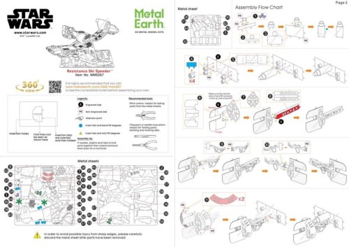 Jednotlivé diely vyberte z kovových plátkov, v prípade potreby použite malé štiepacie nožnice (nie sú súčasťou). Dieliky sa spájajú k sebe pomocou zámkov tvorených úchytom (zobáčikom) a otvorom. Zobáčik ohnite pomocou malých tenkých klieští (nie sú súčasťou) a postupne spojte všetky zámky až vznikne veľmi realistický majstrovský kúsok!