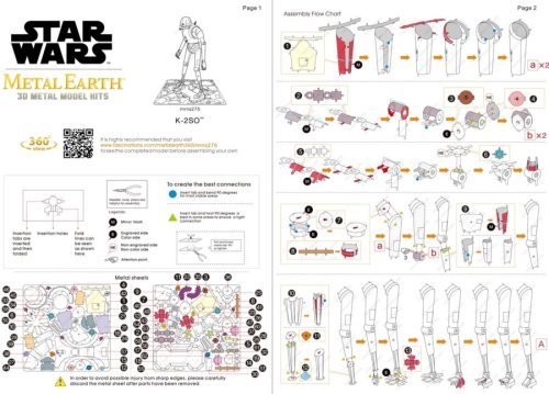 Jednotlivé diely vyberte z kovových plátkov, v prípade potreby použite malé štiepacie nožnice (nie sú súčasťou). Dieliky sa spájajú k sebe pomocou zámkov tvorených úchytom (zobáčikom) a otvorom. Zobáčik ohnite pomocou malých tenkých klieští (nie sú súčasťou) a postupne spojte všetky zámky až vznikne veľmi realistický majstrovský kúsok!