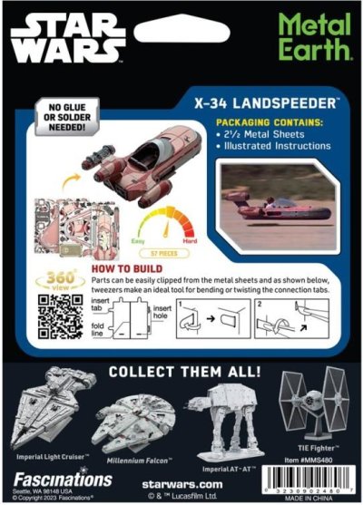Súprava na vytvorenie fascinujúceho kovového 3D modelu . Stavba puzzle METAL EARTH vyžaduje trpezlivosť a šikovné ruky. Výsledok práce však plne vyváža vynaložené úsilie. Miniatúrne repliky sú pôsobivou a pútavou dekoráciou. Zo štvorcových plátkov ocele Vám pod rukami vyrastú detailne prepracované, fascinujúce modely. Autentický vzhľad 3D puzzle METAL EARTH je dosiahnutý vďaka detailnému laserovému gravírovaniu. Náradie nie je súčasťou balenia. PRACOVNÝ POSTUP: Jednotlivé diely vyberte z kovových plátkov, v prípade potreby použite malé štiepacie nožnice (nie sú súčasťou). Dieliky sa spájajú k sebe pomocou zámkov tvorených úchytom (zobáčikom) a otvorom. Zobáčik ohnite pomocou malých tenkých klieští (nie sú súčasťou) a postupne spojte všetky zámky až vznikne veľmi realistický majstrovský kúsok!