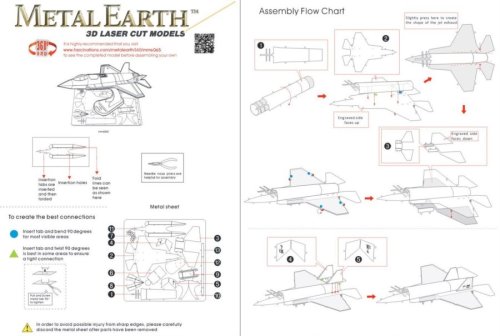 Jednotlivé diely vyberte z kovových plátkov, v prípade potreby použite malé štiepacie nožnice (nie sú súčasťou). Dieliky sa spájajú k sebe pomocou zámkov tvorených úchytom (zobáčikom) a otvorom. Zobáčik ohnite pomocou malých tenkých klieští (nie sú súčasťou) a postupne spojte všetky zámky až vznikne veľmi realistický majstrovský kúsok!