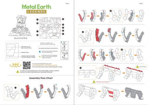 Jednotlivé diely vyberte z kovových plátkov, v prípade potreby použite malé štiepacie nožnice (nie sú súčasťou). Dieliky sa spájajú k sebe pomocou zámkov tvorených úchytom (zobáčikom) a otvorom. Zobáčik ohnite pomocou malých tenkých klieští (nie sú súčasťou) a postupne spojte všetky zámky až vznikne veľmi realistický majstrovský kúsok!