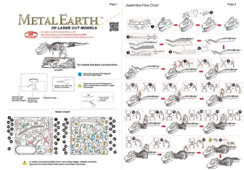 Jednotlivé diely vyberte z kovových plátkov, v prípade potreby použite malé štiepacie nožnice (nie sú súčasťou). Dieliky sa spájajú k sebe pomocou zámkov tvorených úchytom (zobáčikom) a otvorom. Zobáčik ohnite pomocou malých tenkých klieští (nie sú súčasťou) a postupne spojte všetky zámky až vznikne veľmi realistický majstrovský kúsok!