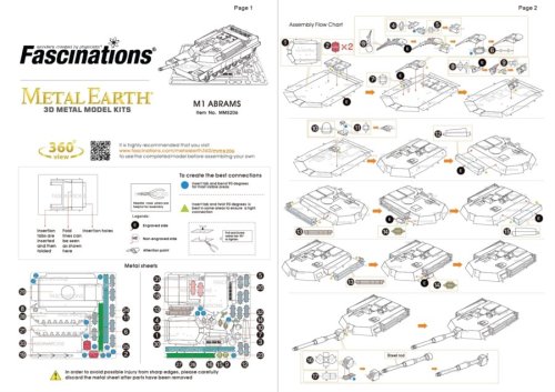 Jednotlivé diely vyberte z kovových plátkov, v prípade potreby použite malé štiepacie nožnice (nie sú súčasťou). Dieliky sa spájajú k sebe pomocou zámkov tvorených úchytom (zobáčikom) a otvorom. Zobáčik ohnite pomocou malých tenkých klieští (nie sú súčasťou) a postupne spojte všetky zámky až vznikne veľmi realistický majstrovský kúsok!