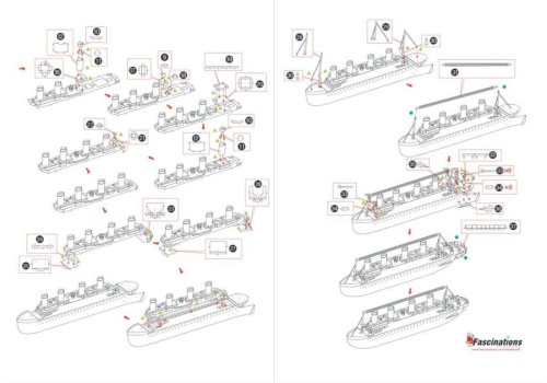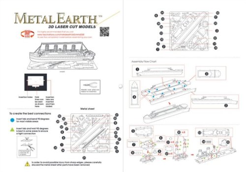 Jednotlivé diely vyberte z kovových plátkov, v prípade potreby použite malé štiepacie nožnice (nie sú súčasťou). Dieliky sa spájajú k sebe pomocou zámkov tvorených úchytom (zobáčikom) a otvorom. Zobáčik ohnite pomocou malých tenkých klieští (nie sú súčasťou) a postupne spojte všetky zámky až vznikne veľmi realistický majstrovský kúsok!