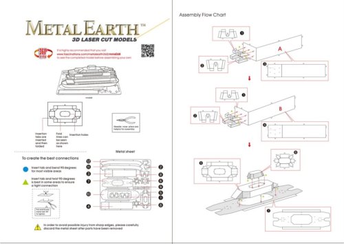 Jednotlivé diely vyberte z kovových plátkov, v prípade potreby použite malé štiepacie nožnice (nie sú súčasťou). Dieliky sa spájajú k sebe pomocou zámkov tvorených úchytom (zobáčikom) a otvorom. Zobáčik ohnite pomocou malých tenkých klieští (nie sú súčasťou) a postupne spojte všetky zámky až vznikne veľmi realistický majstrovský kúsok!