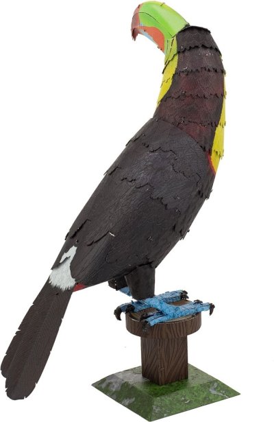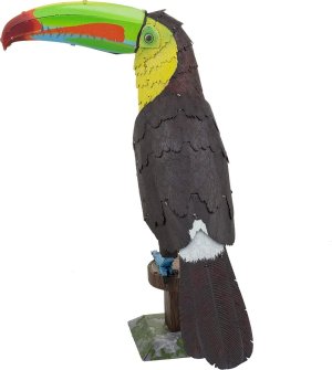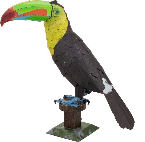 Tukan krátkozobý sa vyskytuje v tropických džungliach od južného Mexika až po Ekvádor a je národným vtákom Belize. Sú to veľmi sociálne vtáky a zriedka sú videní sami. Lietajú v malých kŕdľoch s približne šiestimi až dvanástimi jedincami, obvykle v nížinách a dažďových lesoch. Súprava na vytvorenie fascinujúceho kovového 3D modelu . Stavba puzzle METAL EARTH vyžaduje trpezlivosť a šikovné ruky. Výsledok práce však plne vyváža vynaložené úsilie. Miniatúrne repliky sú pôsobivou a pútavou dekoráciou. Zo štvorcových plátkov ocele Vám pod rukami vyrastú detailne prepracované, fascinujúce modely. Autentický vzhľad 3D puzzle METAL EARTH je dosiahnutý vďaka detailnému laserovému gravírovaniu. Náradie nie je súčasťou balenia. PRACOVNÝ POSTUP: Jednotlivé diely vyberte z kovových plátkov, v prípade potreby použite malé štiepacie nožnice (nie sú súčasťou). Dieliky sa spájajú k sebe pomocou zámkov tvorených úchytom (zobáčikom) a otvorom. Zobáčik ohnite pomocou malých tenkých klieští (nie sú súčasťou) a postupne spojte všetky zámky až vznikne veľmi realistický majstrovský kúsok! Rozmer zloženého puzzle cca 8,7 x 8,7 x 13,5 cm